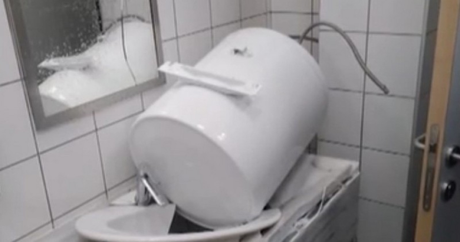 Το σοβαρό συμβάν έγινε στο 3ο δημοτικό σχολείου της περιοχής με την εικόνα του θερμοσίφωνα να είναι σοκαριστική καθώς θα μπορούσε να πέσει πάνω σε κάποιο μαθητή με τις συνέπειες να είναι σημαντικές.
