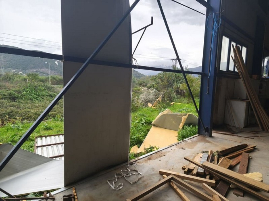 Ο ανεμοστρόβιλος που χτύπησε νύχτα προκάλεσε ζημιές και σε αποθηκευτικούς χώρους της ίδιας περιοχής.