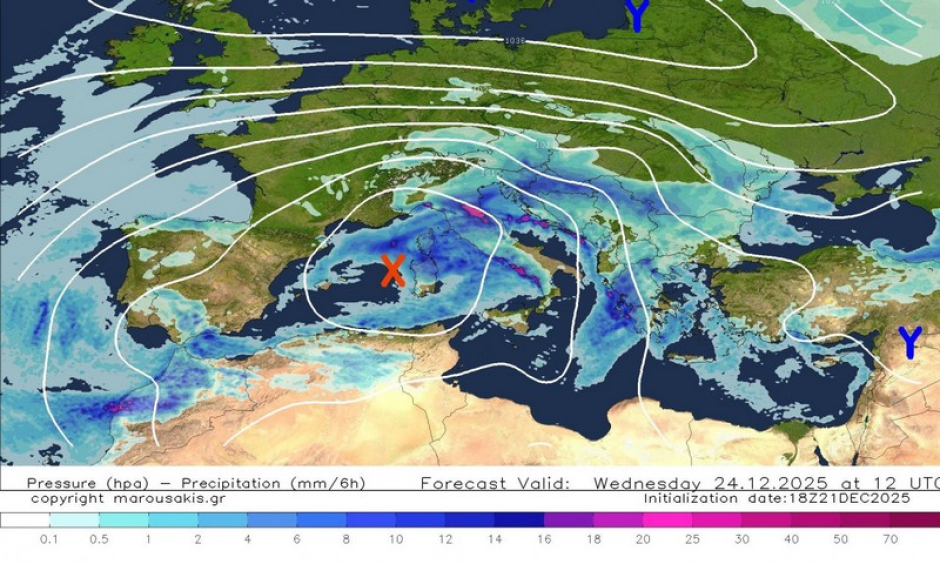 Έτσι λοιπόν βαρομετρικό χαμηλό από την κεντρική Μεσόγειο θα επιδεινώσει τον καιρό στη χώρα μας το διάστημα 24 με 26 του μήνα με την κορύφωση αυτής της επιδείνωσης να αφορά κυρίως το διήμερο Τετάρτη και Πέμπτη δηλαδή παραμονή και ανήμερα των Χριστουγέννων.