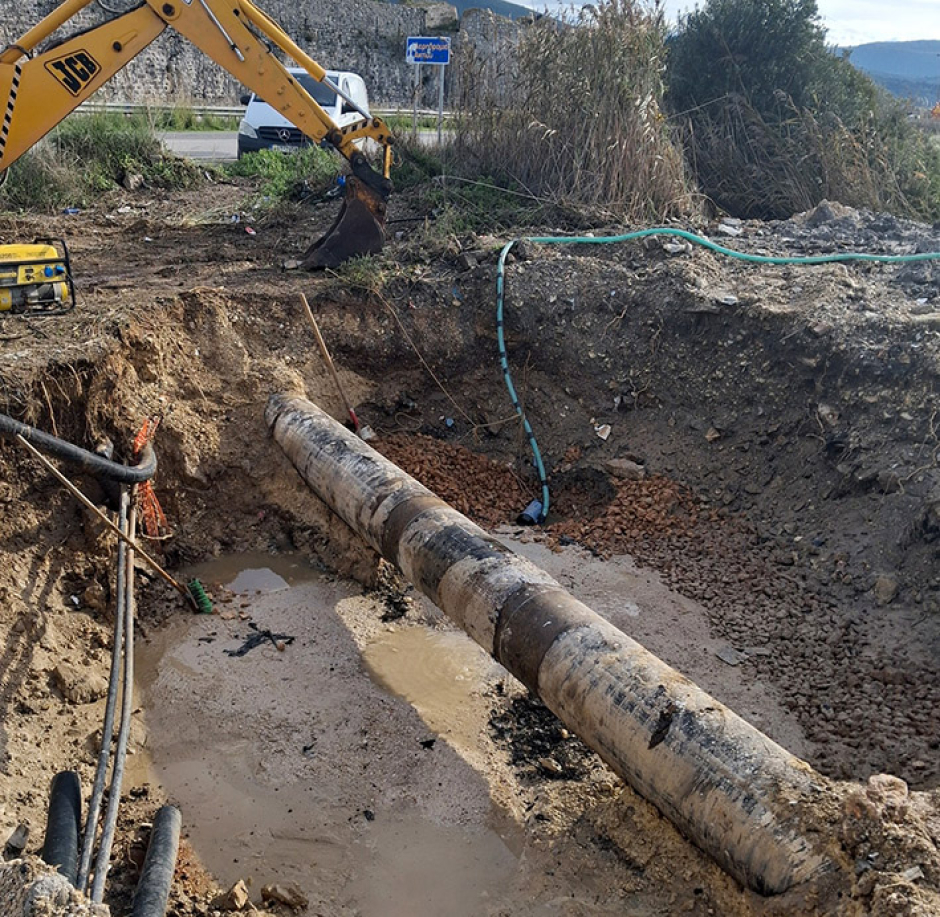 Οι εργασίες εκτελούνται από την κατασκευαστική εταιρεία ΤΕΡΝΑ Α.Ε., στο πλαίσιο του μεγάλου έργου αναβάθμισης του υποθαλάσσιου αγωγού που υδροδοτεί τις δύο περιοχές.