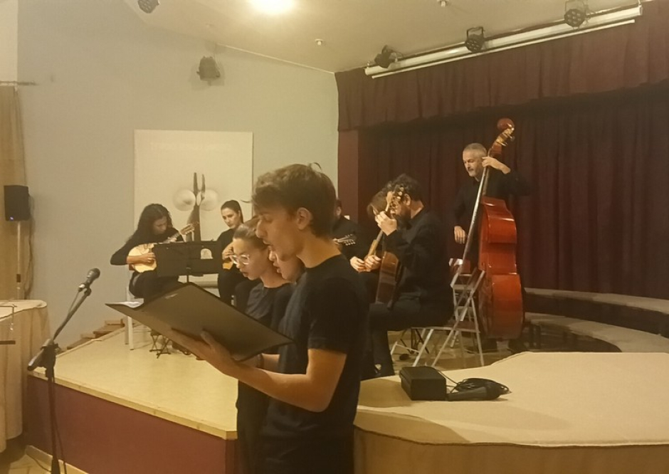 Ξεχωριστή στιγμή αποτέλεσε η παρουσίαση του Συνόλου Νυκτών Εγχόρδων του Μουσικού Σχολείου Λευκάδας, που τίμησε τον Εθνικό μας ποιητή μέσα από επιλογές διασκευασμένων έργων σε μουσική Διονύση Γράψα και Διονύση Γεωργάκη και σε στίχους Βασίλη Σίδερη, Αριστοτέλη Βαλαωρίτη και Ηλία Γεωργάκη. Το σύνολο συνόδεψαν στο τραγούδι μαθητές της Β΄ Λυκείου, προσθέτοντας μια ζωντανή και νεανική νότα στην εκδήλωση.