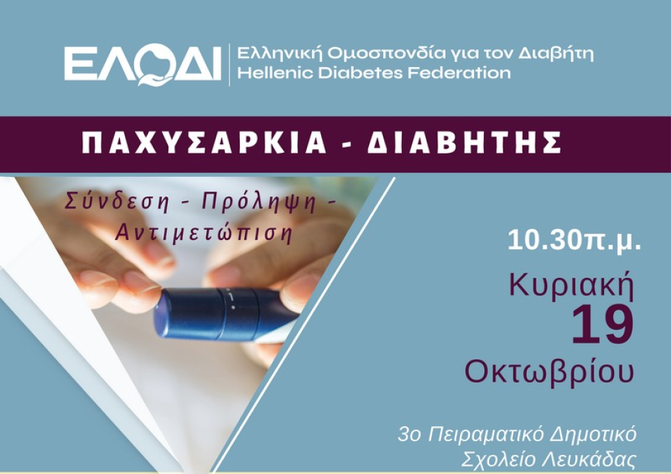 Η Ελληνική Ομοσπονδία για τον Διαβήτη σας προσκαλεί στην ημερίδα ενημέρωσης – ευαισθητοποίησης με θέμα: «Παχυσαρκία – Διαβήτης: Σύνδεση, πρόληψη, αντιμετώπιση».
