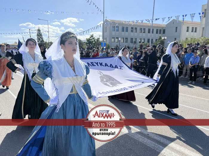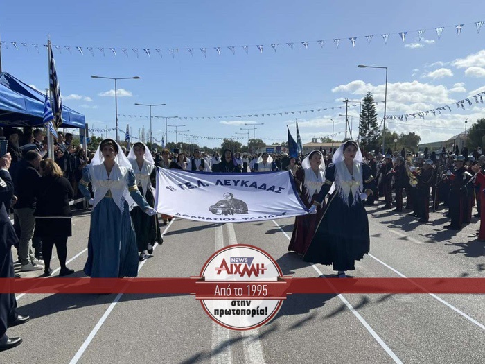 Την παρέλαση άνοιξε η Φιλαρμονική Εταιρεία Λευκάδας και ακολούθησαν τα μαθητικά τμήματα και τα Σώματα Ασφαλείας. Παραβρέθηκε εκ μέρους της κυβέρνησης η Κατερίνα Οικονόμου, Γενική Γραμματέας του Υπουργείου Εθνικής Οικονομίας και Οικονομικών, ο Μητροπολίτης Λευκάδας και Ιθάκης κ.κ. Θεόφιλος, ο δήμαρχος, οι αντιπεριφερειάρχες Αντ. Δουβίτσας και Ευτ. Ζουριδάκης, αντιδήμαρχοι, δημοτικοί και περιφερειακοί σύμβουλοι, εκπρόσωποι των Σωμάτων Ασφαλείας κ.α.