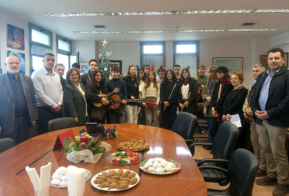 Οι μαθητές, με τη συνοδεία μουσικών οργάνων και υπό την καθοδήγηση της καθηγήτριάς τους, τραγούδησαν τα κάλαντα σκορπίζοντας γιορτινή διάθεση, αποσπώντας το θερμό χειροκρότημα των παρευρισκόμενων. Οι Αντιδήμαρχοι τους ευχαρίστησαν θερμά και τους ευχήθηκαν καλές γιορτές και καλή πρόοδο.