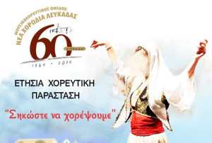 Ετήσια χορευτική παράσταση από τον Μουσικοχορευτικό Όμιλο Λευκάδας «Νέα Χορωδία Λευκάδας» με τίτλο: «Σηκώστε να χορέψουμε».