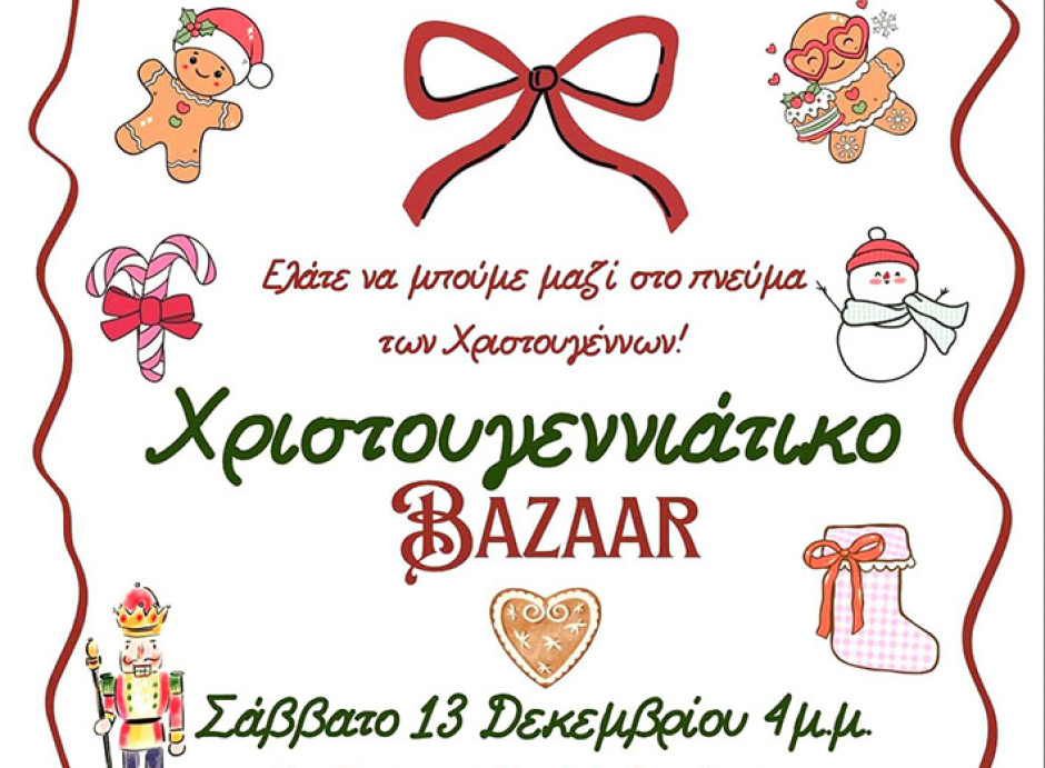 Με στόχο να προσφέρουν μια ζεστή, χαρούμενη και δημιουργική χριστουγεννιάτικη εμπειρία, οι διοργανωτές έχουν ετοιμάσει ένα πλούσιο πρόγραμμα για μικρούς και μεγάλους. Στο bazaar θα υπάρχουν χειροποίητες δημιουργίες, φαγητά, γλυκά και διάφορες λιχουδιές, ενώ τα παιδιά θα έχουν την ευκαιρία να συμμετάσχουν σε εργαστήρια δραστηριοτήτων.