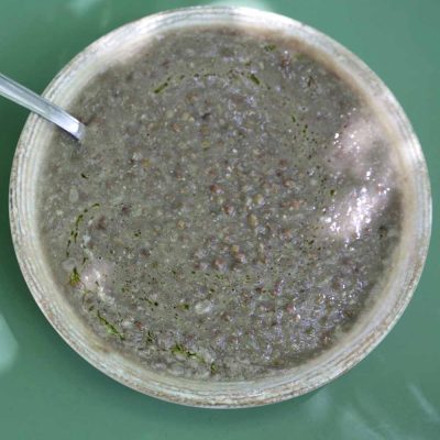 Είναι μικρόσπερμη, το χρώμα της ποικίλει από καφέ πολύ σκούρο μέχρι ανοιχτόχρωμο αλλά και τόνους σκούρου χακί. Δεν είναι ομοιόχρωμη η παρτίδα της κάθε φακής κι αυτό είναι κύριο χαρακτηριστικό της για να μην μπερδεύεστε και να μην σας παραπλανούν. Είναι λεπτόφλουδη και πολύ βραστερή. Το πολύ σε 20′ είναι έτοιμη. Χειλώνει πάντα στο βράσιμο και το γευστικό αποτέλεσμα είναι εντυπωσιακό. Γήινη γεύση με νότες ξηρών καρπών και με μια γλυκιά επίγευση που θα τολμούσα να την έλεγα φρεσκάδα. Ναι αυτό μου έβγαλε, την φρεσκάδα της γης, ακριβώς την γεύση που μου έμεινε όταν δοκίμασα την χλωρή φακή κατευθείαν από το φυτό. Ελάχιστα τα υλικά της συνταγής και κανένα δεν καλύπτει το πρωταγωνιστικό προϊόν. Φακή, νερό, σκόρδο, αλάτι και ελαιόλαδο με λίγη ρίγανη στο τέλος. Το αποτέλεσμα είναι μια χυλωμένη σχεδόν με κρεμώδη υφή σούπα, με αρωματικές και καλοβρασμένες φακές. Λίγη ρίγανη στο τέλος έρχεται κι αρωματίζει όλο το πιάτο.