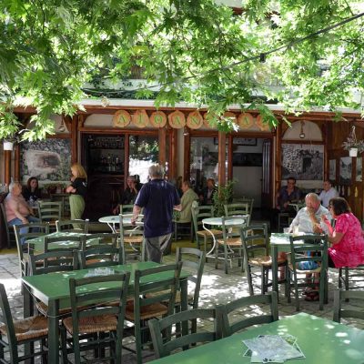 Ήταν πρωί Κυριακής κι ακόμα είχε ησυχία στο χωριό και λιγοστούς θαμώνες στα καφενεία. Στην πλατεία, η οποία είναι σκεπασμένη με τις φυλλωσιές από τα αιωνόβια πλατάνια με τους θεόρατους κορμούς, ήταν το σημείο συνάντησης μας με τους ντόπιους παραγωγούς. Εκεί μας περίμεναν ο Ανδρέας Καραβίτης και ο πρόεδρος Ηλίας Κούρτης. Στριμωχτήκαμε στο αγροτικό αυτοκίνητο, κι αρχίσαμε να ανεβαίνουμε προς το οροπέδιο.